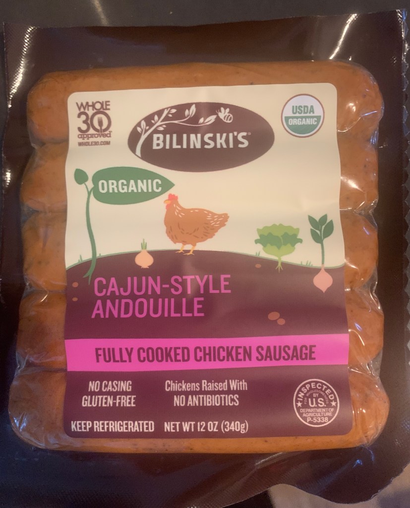Beyond the rice, I typically include some sort of meat such as bacon (the no-sugar Applewood Farms bacon is my go-to bacon when I am out of my Butcher Box bacon), ground beef, or organic sausage (such as the Bilinski’s organic sausage pictured or Whole Foods also makes a good organic sausage option). While the meat is cooking, I’ll typically cut up an onion or shallot and dice an avocado. I’ll then add the meat, onion, and avocado to the rice. I’ll top off the rice bowl with some arugula or cilantro and a touch of salt and olive oil. This filling rice bowl is just as good as a Chipotle rice bowl in my humble opinion.
