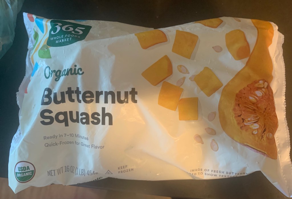 In addition to this pasta, I often buy the Whole Foods brand frozen, organic butternut squash in the Fall and Winter months. The organic frozen cubed butternut squash is more affordable compared to the fresh organic diced squash available in the store. Plus, the frozen squash lasts a lot longer. I use this frozen butternut squash to make creamy soup, or I roast the squash in the oven with a bit of olive oil or avocado oil and some pumpkin pie spice for a superb Fall-flavored side dish. (I love the Whole Foods brand organic spices because they don’t include any preservatives or other sketchy ingredients.)